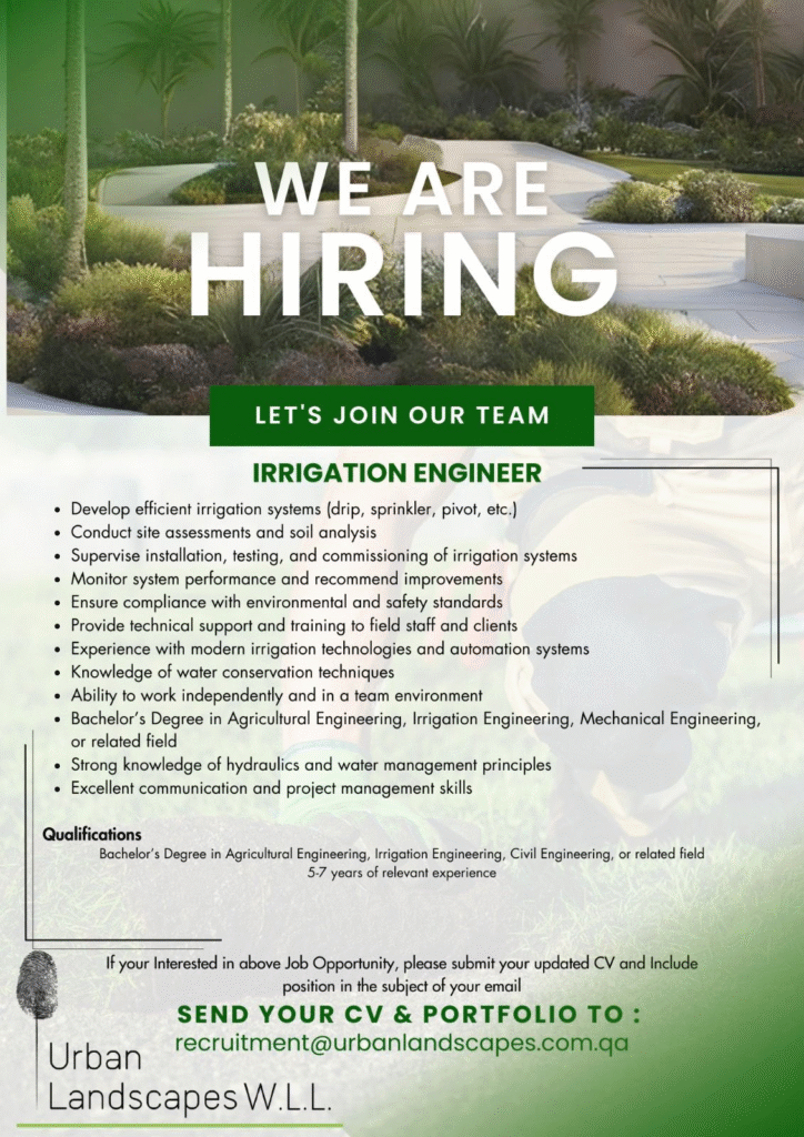 Looking for an Irrigation Engineer to join our team and work on exciting landscaping projects across Qatar.
